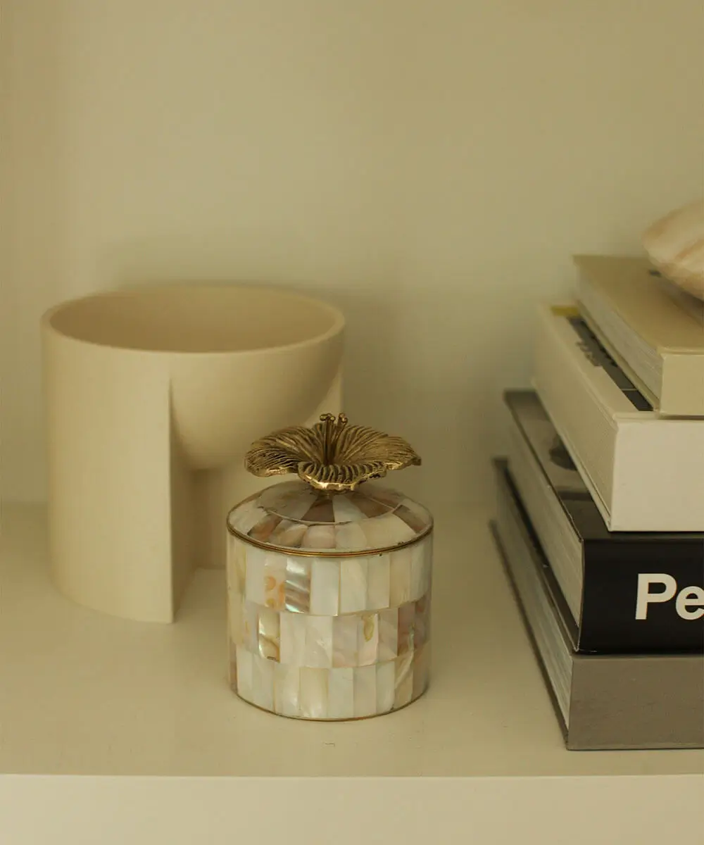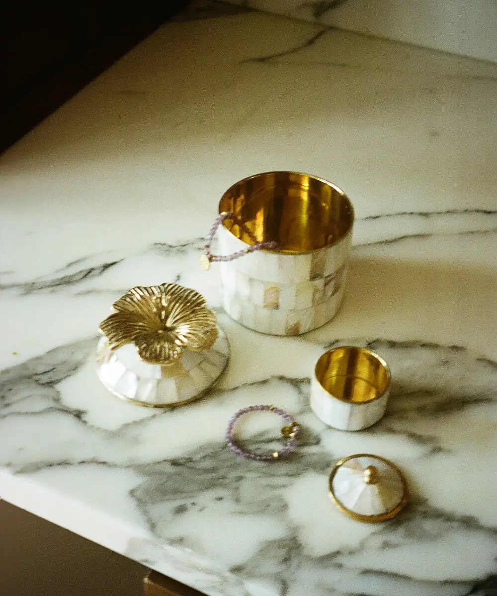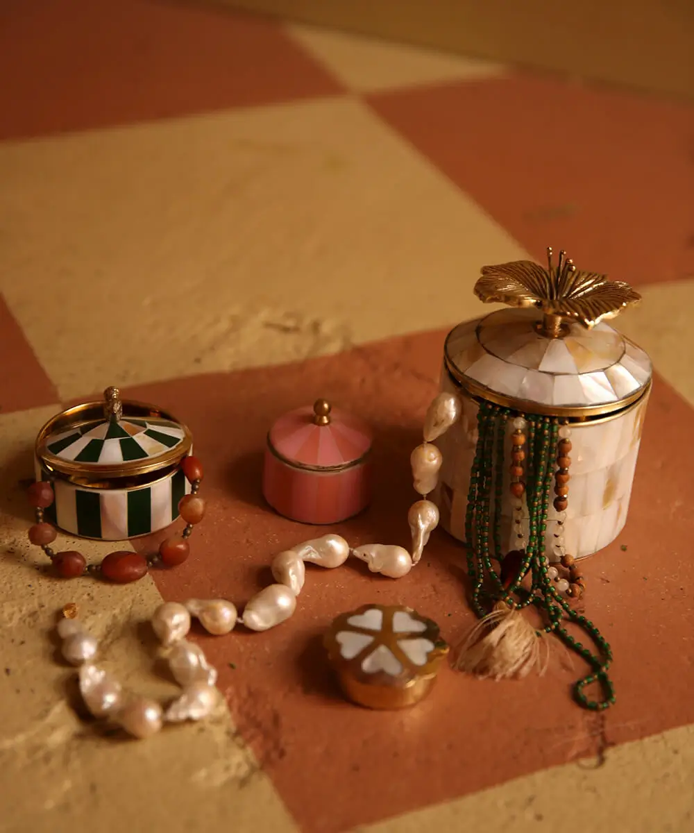 Bewaar je meest kostbare schatten in dit Hailey Hibiscus Circus Doosje. Deze doosjes van messing en schelp zijn handgemaakt door lokale ambachtslieden in India. Door dit handgemaakte unieke product te kopen, steun je de lokale gemeenschappen waar onze producten worden gemaakt. Yay!