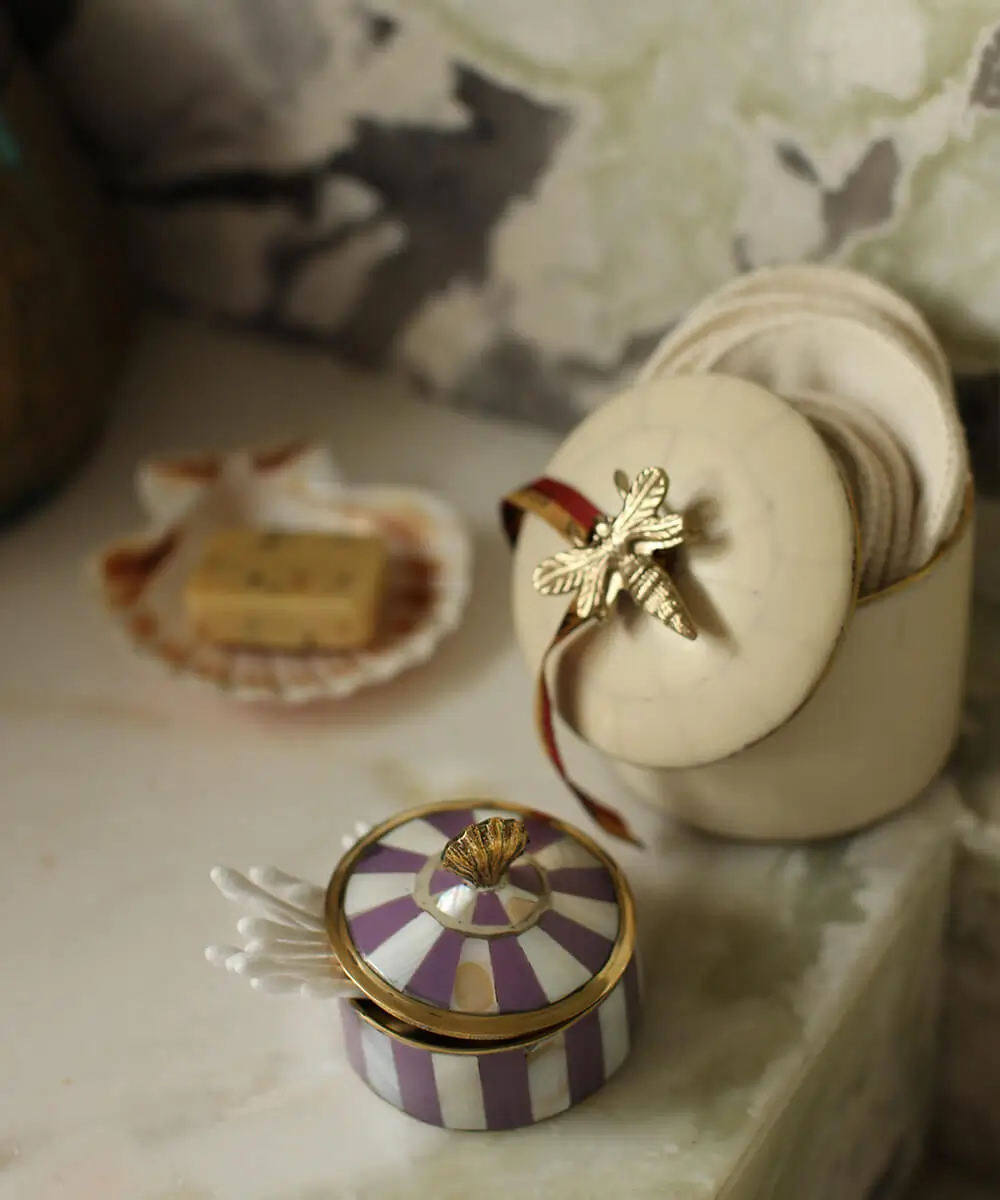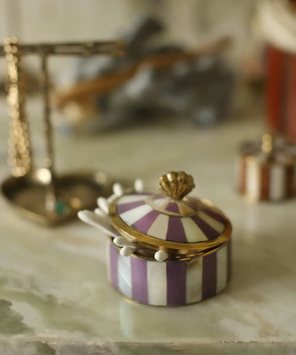 In dit leuke Scarlett Circus Doosje Lila kun je al je kleine spulletjes bewaren. Gemaakt van messing en resin. Dit doosje is handgemaakt in India. Vanwege het handgemaakte karakter, kan het zijn dat er kleine verschillen zitten in de uitstraling van iedere doosje. Dat maakt ieder item uniek! Door het kopen van dit handgemaakte unieke product, ondersteun je rechtstreeks de lokale gemeenschappen waar onze producten worden gemaakt. Yay!